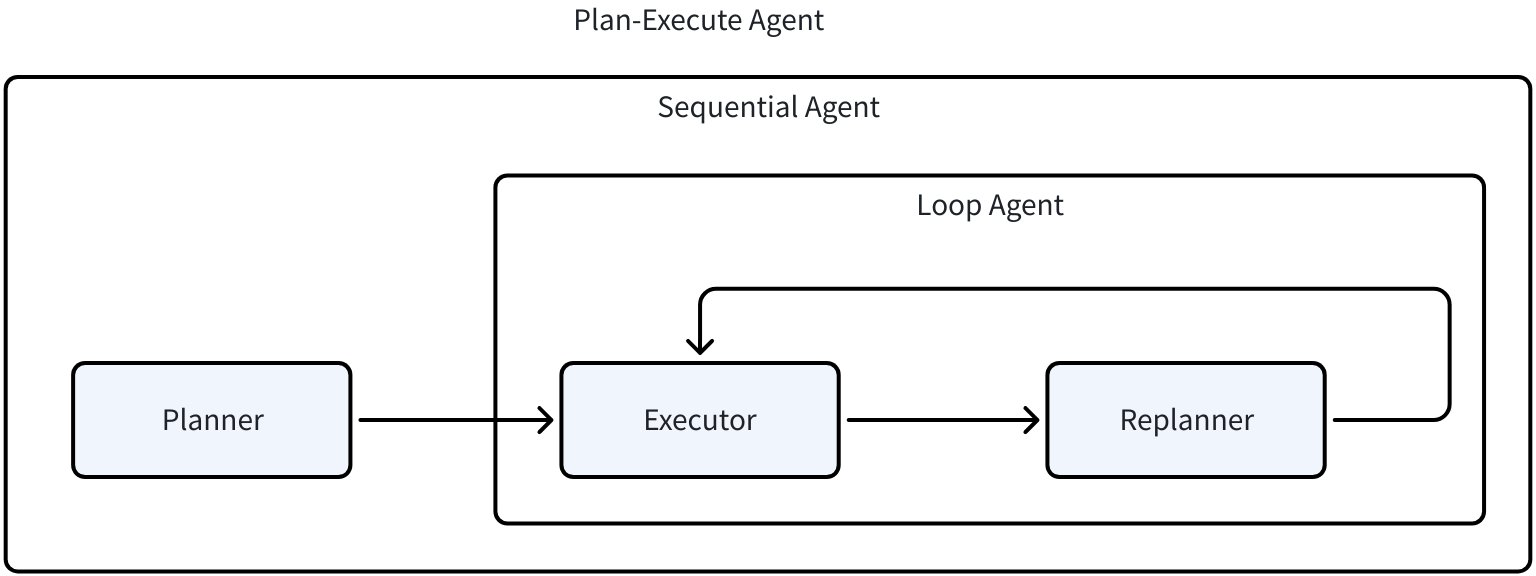 • Inner LoopAgent: iterate Executor and Replanner until done or max iterations