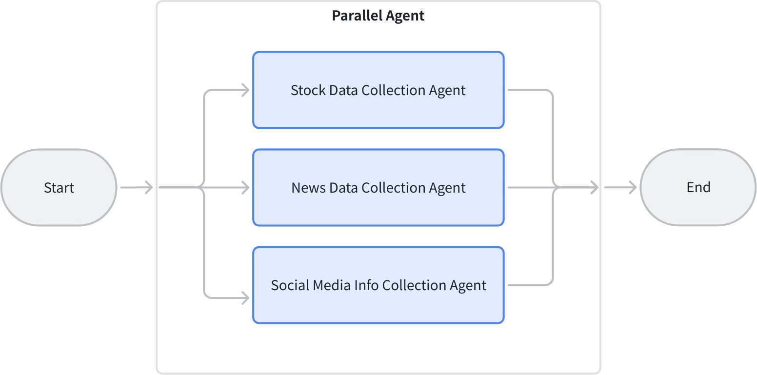 • Parallel workflowBuilt with ParallelAgent for concurrent data collection.