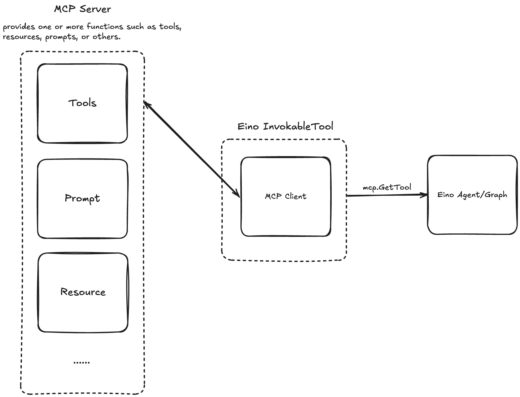 Model Context Protocol (MCP) standardizes model access to external resources. Eino provides wrappers so you can directly use resources exposed by an existing MCP Server.