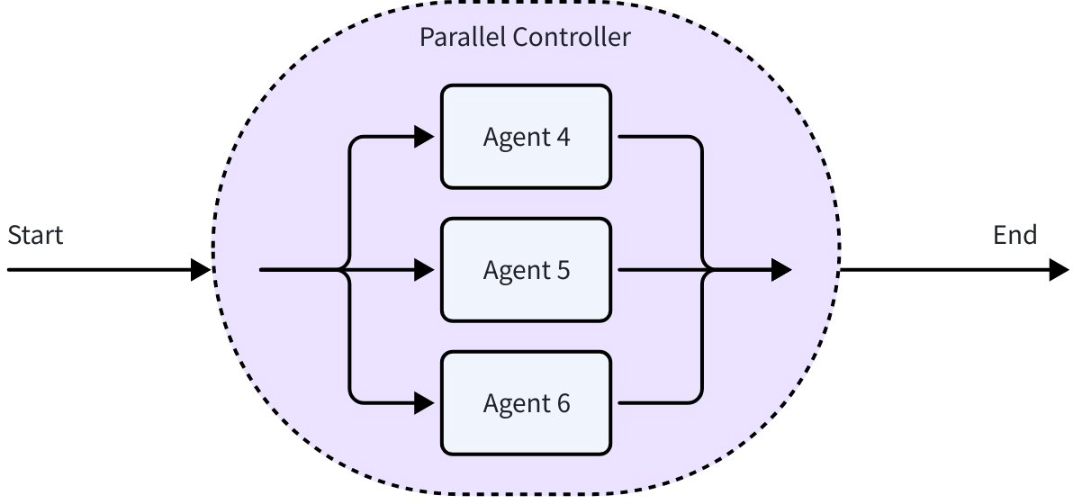 - ParallelAgent — run sub-agents concurrently with shared input; aggregate outputs.